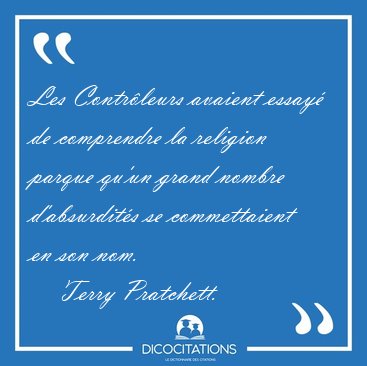 ![Les Contrôleurs avaient essayé de comprendre la religion parque [...] - Terry Pratchett... Les Contrôleurs avaient essayé de comprendre la religion parque [...] - Terry Pratchett...](/imagescitations/Les_Controleurs_avaient_essaye_de_comprendre_la_religion_parque_-_Terry_Pratchett-138324.jpg)