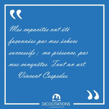 ![Mes capacités ont été façonnées par mes échecs successifs ; ma [...] - Vincent Cespedes... Mes capacités ont été façonnées par mes échecs successifs ; ma [...] - Vincent Cespedes...](/imagescitations/Mes_capacites_ont_ete_faconnees_par_mes_echecs_successifs_ma_-_Vincent_Cespedes-138433.jpg)