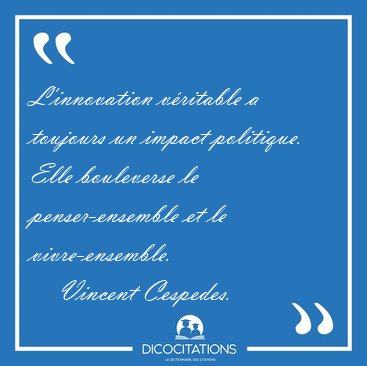![L'innovation véritable a toujours un impact politique. Elle [...] - Vincent Cespedes... L'innovation véritable a toujours un impact politique. Elle [...] - Vincent Cespedes...](/imagescitations/L_innovation_veritable_a_toujours_un_impact_politique_Elle_-_Vincent_Cespedes-138437.jpg)
