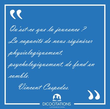 ![Qu'est-ce que la jouvence ? La capacité de nous régénérer [...] - Vincent Cespedes... Qu'est-ce que la jouvence ? La capacité de nous régénérer [...] - Vincent Cespedes...](/imagescitations/Qu_est-ce_que_la_jouvence_La_capacite_de_nous_regenerer_-_Vincent_Cespedes-138530.jpg)