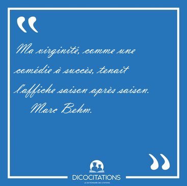 ![Ma virginité, comme une comédie à succès, tenait l'affiche [...] - Marc Behm... Ma virginité, comme une comédie à succès, tenait l'affiche [...] - Marc Behm...](/imagescitations/Ma_virginite_comme_une_comedie_a_succes_tenait_l_affiche_-_Marc_Behm-138757.jpg)