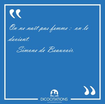 « On ne naît pas femme : on le devient », est une citation extraite d'un livre de Simone de Beauvoir, un essai philosophique publié en 1949 : Le Deuxième Sexe. Cette phrase, devenue, au fil du temps, un slogan utilisé par des mouvements féministes, a également été détournée pour d'autres types de revendications