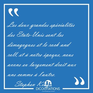 ![Les deux grandes spécialités des Etats-Unis sont les démagogues [...] - Stephen King... Les deux grandes spécialités des Etats-Unis sont les démagogues [...] - Stephen King...](/imagescitations/Les_deux_grandes_specialites_des_Etats-Unis_sont_les_demagogues_-_Stephen_King-139083.jpg)