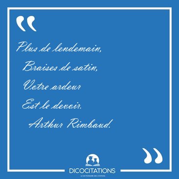 ![Plus de lendemain, Braises de satin, Votre ardeur Est [...] - Arthur Rimbaud... Plus de lendemain, Braises de satin, Votre ardeur Est [...] - Arthur Rimbaud...](/imagescitations/Plus_de_lendemain_Braises_de_satin_Votre_ardeur_Est_-_Arthur_Rimbaud-139334.jpg)