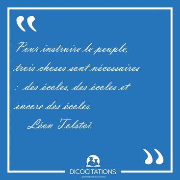 ![Pour instruire le peuple, trois choses sont nécessaires : des [...] - Léon Tolstoï... Pour instruire le peuple, trois choses sont nécessaires : des [...] - Léon Tolstoï...](/imagescitations/Pour_instruire_le_peuple_trois_choses_sont_necessaires_des_-_Leon_Tolstoi-139602.jpg)