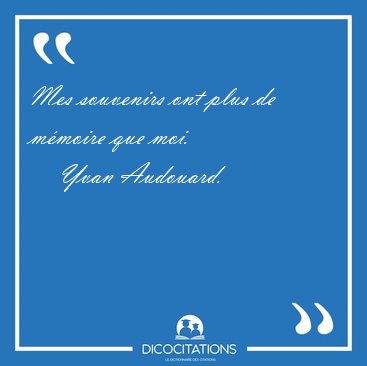 ![Mes souvenirs ont plus de mémoire que [...] - Yvan Audouard... Mes souvenirs ont plus de mémoire que [...] - Yvan Audouard...](/imagescitations/Mes_souvenirs_ont_plus_de_memoire_que_-_Yvan_Audouard-139697.jpg)