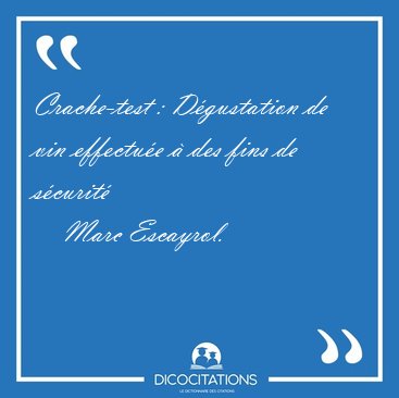 ![Crache-test : Dégustation de vin effectuée à des fins de [...] - Marc Escayrol... Crache-test : Dégustation de vin effectuée à des fins de [...] - Marc Escayrol...](/imagescitations/Crache-test_Degustation_de_vin_effectuee_a_des_fins_de_-_Marc_Escayrol-139980.jpg)