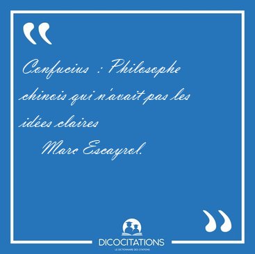 ![Confucius : Philosophe chinois qui n'avait pas les idées [...] - Marc Escayrol... Confucius : Philosophe chinois qui n'avait pas les idées [...] - Marc Escayrol...](/imagescitations/Confucius_Philosophe_chinois_qui_n_avait_pas_les_idees_-_Marc_Escayrol-140016.jpg)