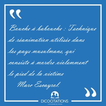 Bouche à babouche : Technique de réanimation utilisée dans les pays musulmans, qui consiste à mordre violemment le pied de la victime