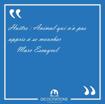 ![Huître : Animal qui n'a pas appris à se [...] - Marc Escayrol... Huître : Animal qui n'a pas appris à se [...] - Marc Escayrol...](/imagescitations/Huitre_Animal_qui_n_a_pas_appris_a_se_-_Marc_Escayrol-140117.jpg)