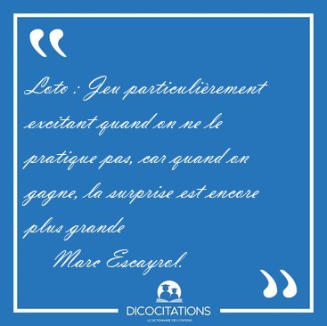 Recherche de citations : Loto : particulièrement / particulièrement excitant / Loto : excitant