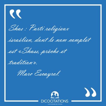 ![Shas : Parti religieux israélien, dont le nom complet est [...] - Marc Escayrol... Shas : Parti religieux israélien, dont le nom complet est [...] - Marc Escayrol...](/imagescitations/Shas_Parti_religieux_israelien_dont_le_nom_complet_est_-_Marc_Escayrol-140161.jpg)