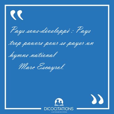 ![Pays sous-développé : Pays trop pauvre pour se payer un hymne [...] - Marc Escayrol... Pays sous-développé : Pays trop pauvre pour se payer un hymne [...] - Marc Escayrol...](/imagescitations/Pays_sous-developpe_Pays_trop_pauvre_pour_se_payer_un_hymne_-_Marc_Escayrol-140213.jpg)