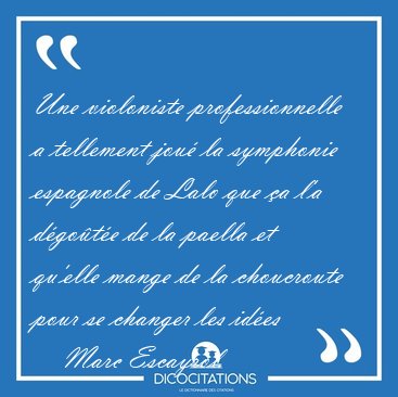 Une violoniste professionnelle a tellement joué la symphonie espagnole de Lalo que ça l'a dégoûtée de la paella et qu'elle mange de la choucroute pour se changer les idées