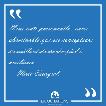 ![Mine anti-personnelle : arme abominable que ses concepteurs [...] - Marc Escayrol... Mine anti-personnelle : arme abominable que ses concepteurs [...] - Marc Escayrol...](/imagescitations/Mine_anti-personnelle_arme_abominable_que_ses_concepteurs_-_Marc_Escayrol-140620.jpg)