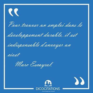 ![Pour trouver un emploi dans le développement durable, il est [...] - Marc Escayrol... Pour trouver un emploi dans le développement durable, il est [...] - Marc Escayrol...](/imagescitations/Pour_trouver_un_emploi_dans_le_developpement_durable_il_est_-_Marc_Escayrol-140621.jpg)