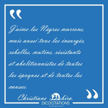 ![J'aime les Nègres marrons, mais aussi tous les insurgés, [...] - Christiane Taubira... J'aime les Nègres marrons, mais aussi tous les insurgés, [...] - Christiane Taubira...](/imagescitations/J_aime_les_Negres_marrons_mais_aussi_tous_les_insurges_-_Christiane_Taubira-140798.jpg)