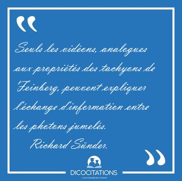 ![Seuls les vidéons, analogues aux propriétés des tachyons de [...] - Richard Sünder... Seuls les vidéons, analogues aux propriétés des tachyons de [...] - Richard Sünder...](/imagescitations/Seuls_les_videons_analogues_aux_proprietes_des_tachyons_de_-_Richard_Sunder-140847.jpg)