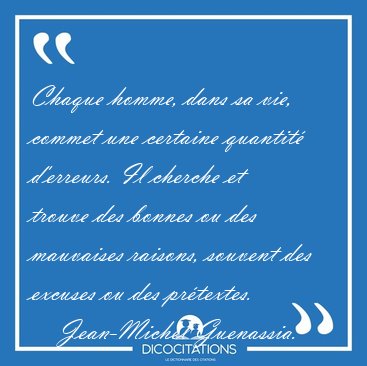 Chaque homme, dans sa vie, commet une certaine quantité d'erreurs. Il cherche et trouve des bonnes ou des mauvaises raisons, souvent des excuses ou des prétextes.