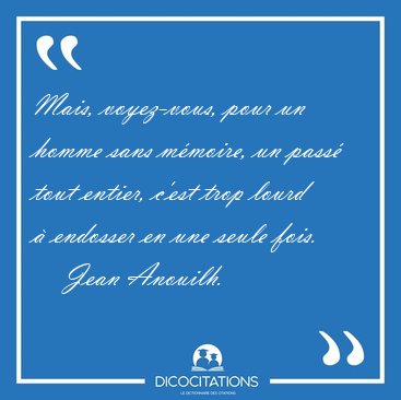 ![Mais, voyez-vous, pour un homme sans mémoire, un passé tout [...] - Jean Anouilh... Mais, voyez-vous, pour un homme sans mémoire, un passé tout [...] - Jean Anouilh...](/imagescitations/Mais_voyez-vous_pour_un_homme_sans_memoire_un_passe_tout_-_Jean_Anouilh-141870.jpg)