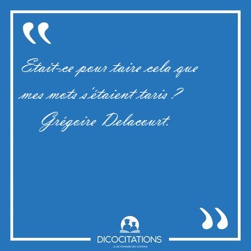 ![Etait-ce pour taire cela que mes mots s'étaient taris [...] - Grégoire Delacourt... Etait-ce pour taire cela que mes mots s'étaient taris [...] - Grégoire Delacourt...](/imagescitations/Etait-ce_pour_taire_cela_que_mes_mots_s_etaient_taris_-_Gregoire_Delacourt-141926.jpg)
