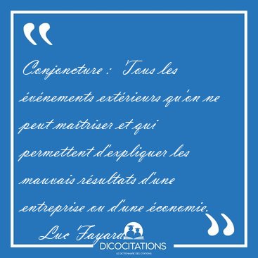 Conjoncture : Tous les événements extérieurs qu'on ne peut maîtriser et qui permettent d'expliquer les mauvais résultats d'une entreprise ou d'une économie.