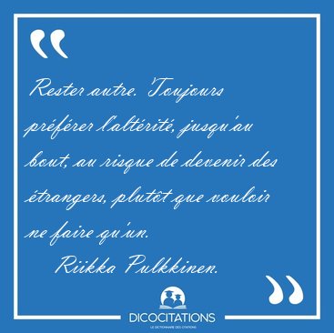 ![Rester autre. Toujours préférer l'altérité, jusqu'au bout, au [...] - Riikka Pulkkinen... Rester autre. Toujours préférer l'altérité, jusqu'au bout, au [...] - Riikka Pulkkinen...](/imagescitations/Rester_autre_Toujours_preferer_l_alterite_jusqu_au_bout_au_-_Riikka_Pulkkinen-142342.jpg)