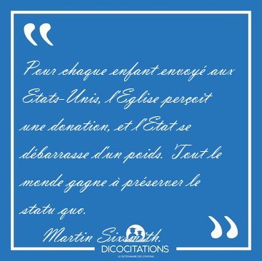 ![Pour chaque enfant envoyé aux Etats-Unis, l'Eglise perçoit une [...] - Martin Sixsmith... Pour chaque enfant envoyé aux Etats-Unis, l'Eglise perçoit une [...] - Martin Sixsmith...](/imagescitations/Pour_chaque_enfant_envoye_aux_Etats-Unis_l_Eglise_percoit_une_-_Martin_Sixsmith-142582.jpg)