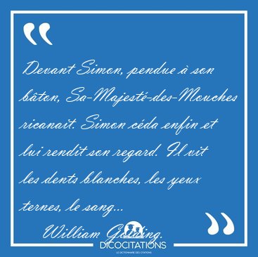 ![Devant Simon, pendue à son bâton, Sa-Majesté-des-Mouches [...] - William Golding... Devant Simon, pendue à son bâton, Sa-Majesté-des-Mouches [...] - William Golding...](/imagescitations/Devant_Simon_pendue_a_son_baton_Sa-Majeste-des-Mouches_-_William_Golding-142808.jpg)