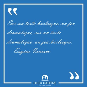 ![Sur un texte burlesque, un jeu dramatique, sur un texte [...] - Eugène Ionesco... Sur un texte burlesque, un jeu dramatique, sur un texte [...] - Eugène Ionesco...](/imagescitations/Sur_un_texte_burlesque_un_jeu_dramatique_sur_un_texte_-_Eugene_Ionesco-142887.jpg)