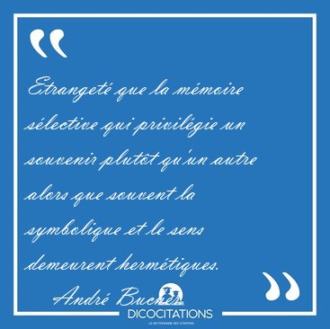![Etrangeté que la mémoire sélective qui privilégie un souvenir [...] - André Bucher... Etrangeté que la mémoire sélective qui privilégie un souvenir [...] - André Bucher...](/imagescitations/Etrangete_que_la_memoire_selective_qui_privilegie_un_souvenir_-_Andre_Bucher-142945.jpg)