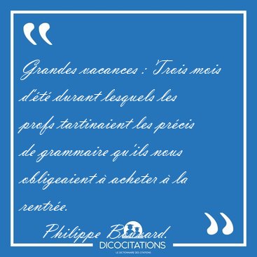 ![Grandes vacances : Trois mois d'été durant lesquels les profs [...] - Philippe Bouvard... Grandes vacances : Trois mois d'été durant lesquels les profs [...] - Philippe Bouvard...](/imagescitations/Grandes_vacances_Trois_mois_d_ete_durant_lesquels_les_profs_-_Philippe_Bouvard-143121.jpg)