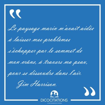 ![Le paysage marin m'avait aidée à laisser mes problèmes [...] - Jim Harrison... Le paysage marin m'avait aidée à laisser mes problèmes [...] - Jim Harrison...](/imagescitations/Le_paysage_marin_m_avait_aidee_a_laisser_mes_problemes_-_Jim_Harrison-143369.jpg)