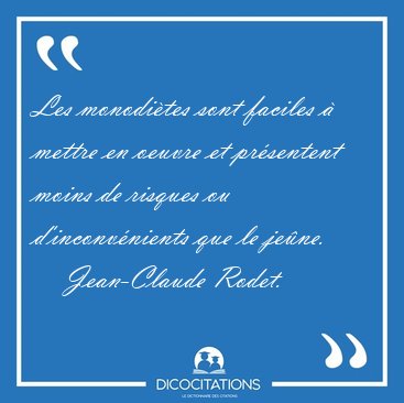 ![Les monodiètes sont faciles à mettre en oeuvre et présentent [...] - Jean-Claude Rodet... Les monodiètes sont faciles à mettre en oeuvre et présentent [...] - Jean-Claude Rodet...](/imagescitations/Les_monodietes_sont_faciles_a_mettre_en_oeuvre_et_presentent_-_Jean-Claude_Rodet-143480.jpg)