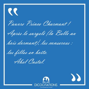 ![Pauvre Prince Charmant ! Après le surgelé (la Belle au bois [...] - Abel Castel... Pauvre Prince Charmant ! Après le surgelé (la Belle au bois [...] - Abel Castel...](/imagescitations/Pauvre_Prince_Charmant_Apres_le_surgele_la_Belle_au_bois_-_Abel_Castel-143486.jpg)