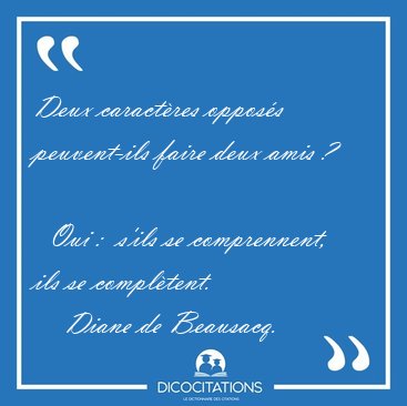 ![Deux caractères opposés peuvent-ils faire deux amis ? Oui : [...] - Diane de Beausacq... Deux caractères opposés peuvent-ils faire deux amis ? Oui : [...] - Diane de Beausacq...](/imagescitations/Deux_caracteres_opposes_peuvent-ils_faire_deux_amis_Oui_-_Diane_de_Beausacq-143777.jpg)