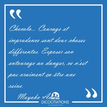 Chocola... Courage et imprudence sont deux choses différentes. Exposer son entourage au danger, ce n'est pas vraiment ça être une reine.
