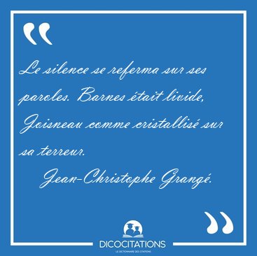 ![Le silence se referma sur ses paroles. Barnes était livide, [...] - Jean-Christophe Grangé... Le silence se referma sur ses paroles. Barnes était livide, [...] - Jean-Christophe Grangé...](/imagescitations/Le_silence_se_referma_sur_ses_paroles_Barnes_etait_livide_-_Jean-Christophe_Grange-144033.jpg)