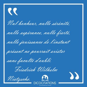 Nul bonheur, nulle sérénité, nulle espérance, nulle fierté, nulle jouissance de l'instant présent ne pourrait exister sans faculté d'oubli.