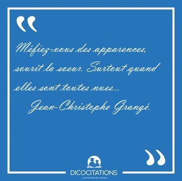 ![Méfiez-vous des apparences, sourit la soeur. Surtout quand elles [...] - Jean-Christophe Grangé... Méfiez-vous des apparences, sourit la soeur. Surtout quand elles [...] - Jean-Christophe Grangé...](/imagescitations/Mefiez-vous_des_apparences_sourit_la_soeur_Surtout_quand_elles_-_Jean-Christophe_Grange-144621.jpg)