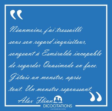 ![Néanmoins, j'ai tressailli sous son regard inquisiteur, songeant [...] - Alex Flinn... Néanmoins, j'ai tressailli sous son regard inquisiteur, songeant [...] - Alex Flinn...](/imagescitations/Neanmoins_j_ai_tressailli_sous_son_regard_inquisiteur_songeant_-_Alex_Flinn-144709.jpg)