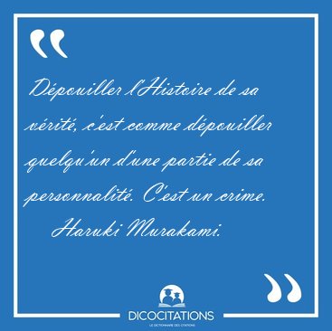 ![Dépouiller l'Histoire de sa vérité, c'est comme dépouiller [...] - Haruki Murakami... Dépouiller l'Histoire de sa vérité, c'est comme dépouiller [...] - Haruki Murakami...](/imagescitations/Depouiller_l_Histoire_de_sa_verite_c_est_comme_depouiller_-_Haruki_Murakami-144726.jpg)