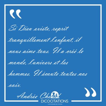 ![Si Dieu existe, reprit tranquillement l'enfant, il nous aime [...] - Andrée Chedid... Si Dieu existe, reprit tranquillement l'enfant, il nous aime [...] - Andrée Chedid...](/imagescitations/Si_Dieu_existe_reprit_tranquillement_l_enfant_il_nous_aime_-_Andree_Chedid-146548.jpg)