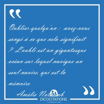 ![Oublier quelqu'un : avez-vous songé à ce que cela signifiait ? [...] - Amélie Nothomb... Oublier quelqu'un : avez-vous songé à ce que cela signifiait ? [...] - Amélie Nothomb...](/imagescitations/Oublier_quelqu_un_avez-vous_songe_a_ce_que_cela_signifiait_-_Amelie_Nothomb-146599.jpg)