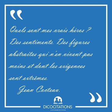 ![Quels sont mes vrais héros ? Des sentiments. Des figures [...] - Jean Cocteau... Quels sont mes vrais héros ? Des sentiments. Des figures [...] - Jean Cocteau...](/imagescitations/Quels_sont_mes_vrais_heros_Des_sentiments_Des_figures_-_Jean_Cocteau-146910.jpg)