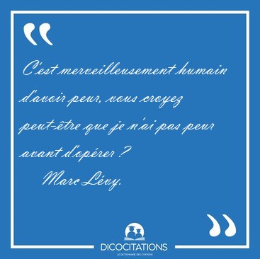 C'est merveilleusement humain d'avoir peur, vous croyez peut-être que je n'ai pas peur avant d'opérer ?
