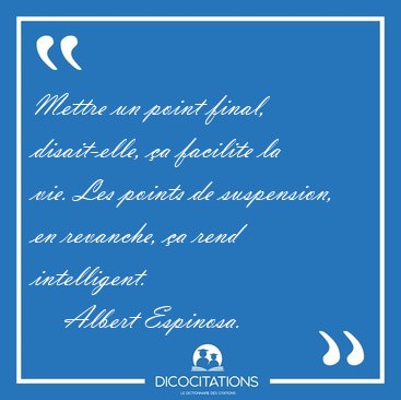 ![Mettre un point final, disait-elle, ça facilite la vie. Les [...] - Albert Espinosa... Mettre un point final, disait-elle, ça facilite la vie. Les [...] - Albert Espinosa...](/imagescitations/Mettre_un_point_final_disait-elle_ca_facilite_la_vie_Les_-_Albert_Espinosa-147747.jpg)