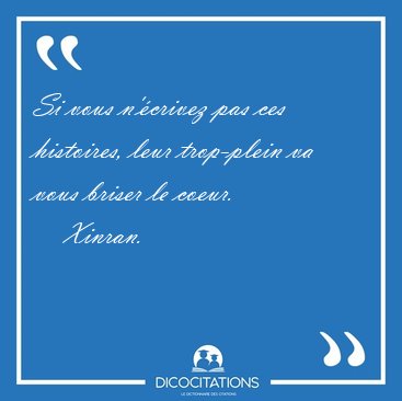 ![Si vous n'écrivez pas ces histoires, leur trop-plein va vous [...] - Xinran... Si vous n'écrivez pas ces histoires, leur trop-plein va vous [...] - Xinran...](/imagescitations/Si_vous_n_ecrivez_pas_ces_histoires_leur_trop-plein_va_vous_-_Xinran-147770.jpg)