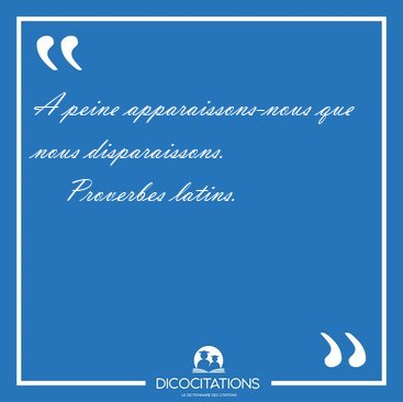 ![A peine apparaissons-nous que nous [...] - Proverbes latins... A peine apparaissons-nous que nous [...] - Proverbes latins...](/imagescitations/A_peine_apparaissons-nous_que_nous_-_Proverbes_latins-148087.jpg)