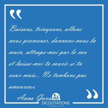 ![Baisons, trinquons, allons nous promener, donnons-nous la main, [...] - Anna Gavalda... Baisons, trinquons, allons nous promener, donnons-nous la main, [...] - Anna Gavalda...](/imagescitations/Baisons_trinquons_allons_nous_promener_donnons-nous_la_main_-_Anna_Gavalda-148109.jpg)